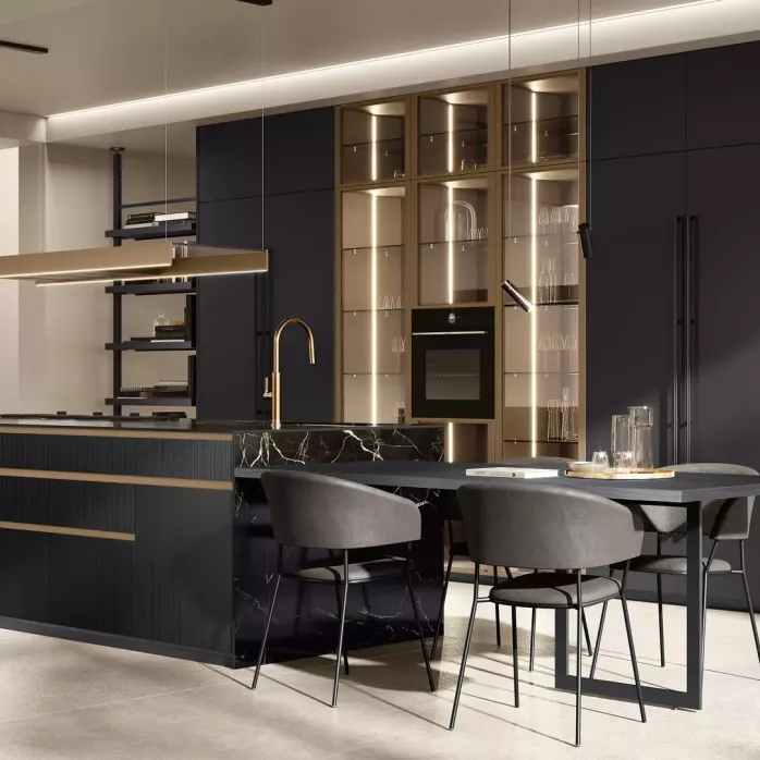• LUBE Brera объединяет визуальную лёгкость и функциональность. Технологичные механизмы открывания, продуманная эргономика, интегрированные системы освещения — всё создано, чтобы работа на кухне приносила удовольствие. Эта кухня не просто функциональна — она создаёт эмоциональное пространство для встреч с близкими.